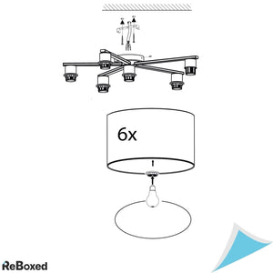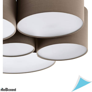 Eglo Plafonieră 6 x E27/ max 40W/230V caracterizat de un desing plăcut și funcțional. Lampa este proiectată pentru becuri cu soclu E27 (becurile nu sunt incluse). Cele șase abajururi din material textil, interconectate, oferă camerei o atmosferă confortabilă, intima, indiferent dacă este camera de zi, dormitor, sufragerie, hol sau bucătărie.