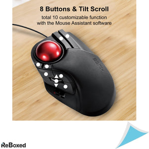 ELECOM HUGE Trackball este un mouse ergonomic de precizie, cu bila fixa de 52 mm, ideal pentru utilizatorii care doresc un control precis al cursorului cu miscare minima a mainii. Tehnologia optica avansata ofera urmarire precisa si fluida, contribuind la o experienta de lucru mai confortabila si eficienta.