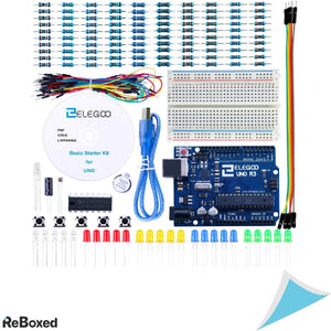 Kit-ul de start Arduino Uno R3 de la Elegoo, pentru începătorim vă poate introduce în lumea Arduino într-un mod practic. Puteți învăța să construiți numeroase proiecte creative. Veți începe cu înțelegerea principiilor fundamentale din electronică, putând apoi să accesezi proiecte mai complexe, prin care să începi să controlați / influențați lumea fizică cu ajutorul senzorilor și altor componente.