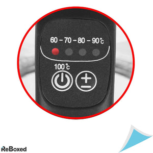 Element de încălzire ascuns din oțel inoxidabil, ușor de curățat, sticlă borosilicată pentru rezistență absolută la căldură și gust neutru. Recipientul din sticlă strălucește în diferite culori, în funcție de temperatura setată. Datorită selectării temperaturii sale (selectabil: 60 ° C - 70 ° C - 80 ° C - 90 ° C - 100 ° C), este ideal pentru, cafea, ceai, alimente pentru bebeluși, supă...etc