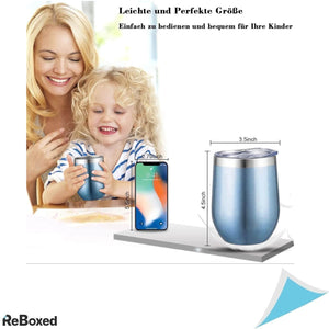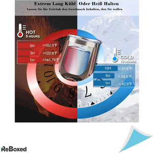 Aceste pahare pentru vin din otel inoxidabil au un capac care impiedica pierderea temperaturii , iar in acelasi timp, mentin o temperatura fierbinte pentru aproximativ 5 ore iar pentru o bautura rece aproximativ 10 ore. Capacul are un design glisant care minimizeaza scurgerile de lichid.