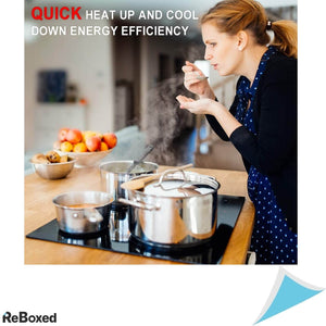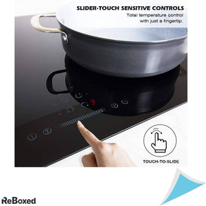 Toate ochiurile pot fi controlate separat și au funcția Booster, care mărește din nou puterea pentru încălzirea rapidă până la 2000W. Controlul plitei este simplu, cu panoul tactil încorporat, cu control Touch-to-slide pentru controlul complet și afișaj digital. În acest fel, niciun buton sau comandă nu deranjează suprafața unității de bucătărie. În plus față de cele 9 niveluri de putere, dispune de un temporizator de pana la 99 de minute, care, după ce a trecut timpul setat, oprește plita sau emite semnale sonore.
