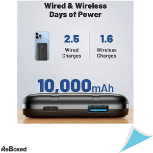 Sigur și extrem de subtire, un incarcator portabil de 10000 mAh aprobat de companiile aeriene, magnetic, gandit special pentru telefoanele iPhone de la Apple. Pe langa incarcarea wireless, dispune de doua porturi USB, inclusiv USB-C. Compatibil cu orice tip de telefon dar cu dedicatie pentru iphone, telefoane cu functie Qi.