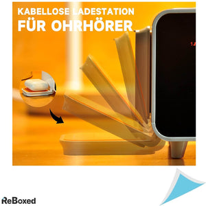 Ceasul dispune de Incarcator Wireless Ultra-Fast 15W pentru dispozitive mobile sau locas pliabil pentru incarcarea 3W wireless al castilor si de suport separat pentru incarcarea ceasurilor smart (chargerul ceasului nu este inclus, este doar locasul unde introduceti chargerul).