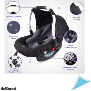 Scaun auto pentru bebeluși Grupa 0+, orientat spre spate, 0-15 luni, 0-13Kg ECE E44/04 si prindere in 3 puncte, Lettas | ReBoxed