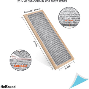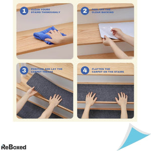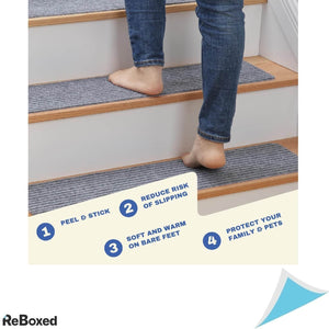 Pachet de 15 covorase antiderapante si autoadezive (material antiderapant ce nu contile adeziv sau lipici), pentru scari interioare, cu dimensiunile 65x20cm. Se pot spala oricand, inclusiv in masina de spalat, nu raman deloc reziduri dupa inlaturare. Covorasele pot fi inclusiv taiate cu foarfeca, pentru o compatibilitate deplina, in orice situatie.