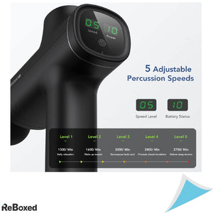 Pistolul de masaj cu percuție Mebak 5, are 6 capete interschimbabile și 5 viteze, in intervalul de la 1300 la 2700 rpm. Excelent pentru un masaj profund al tesuturilor, avand o amplitudine de pana la 10mm