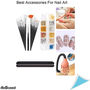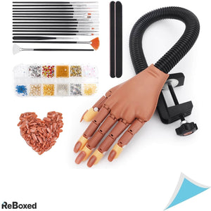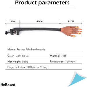 Setul contine 1 mana pentru antrenament, 100 unghii refolosibile, un set de varfuri pentru pictare manuala, cu care pot desena diferite modele, 2 placi de nisip, cutie cu diverse accesorii ornamentale.