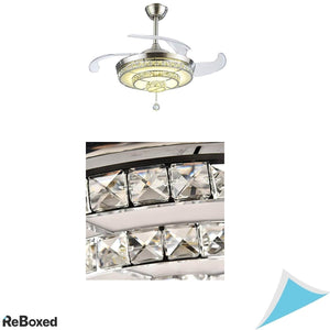 Candelabru de Tavan, LED, cu Ventilator avand lame automat retractabile, 3 tipuri de lumina si 3 viteze selectabile din Telecomanda, ultra-silentios, de la ReBoxed.