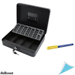 • Detectarea bancnotelor false: Include un stilou verificator pentru detectarea rapida si usoara a bancnotelor false in euro, dolari si lire sterline.