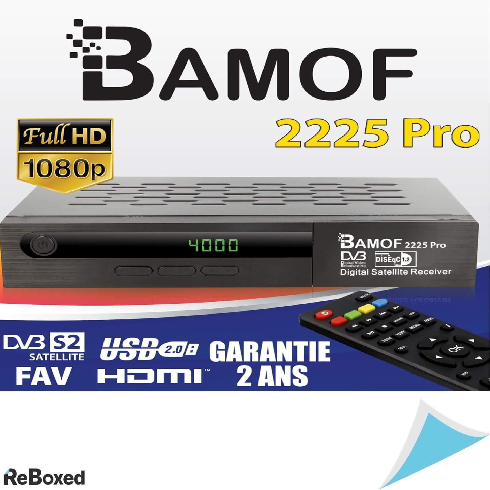 Bamof 2225 PRO este un receptor digital de satelit cu functii avansate si imagine Full HD 1080p. Este preprogramat pentru satelitii Astra, Hotbird si Türksat, astfel ca poate fi utilizat imediat, fara configurari suplimentare. Include telecomanda eficienta si cablu HDMI.