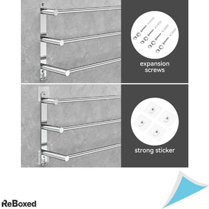 Organizeaza prosoapele intr-un mod elegant si practic cu suportul extensibil Boyorc. Fabricat din otel inoxidabil durabil, acest suport reglabil de perete se monteaza fara gaurire, oferind pana la 3 niveluri de depozitare. Ideal pentru baie sau bucatarie, combina functionalitatea cu un design modern si compact.