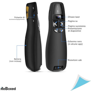 Designul ergonomic asigura o prindere confortabila, iar butoanele sunt amplasate intuitiv pentru a preveni apasarile accidentale. Compatibilitatea larga cu diverse sisteme de operare si aplicatii de prezentare face ca acest dispozitiv sa fie ideal pentru utilizare in sali de conferinte, prezentari academice sau sesiuni de formare.