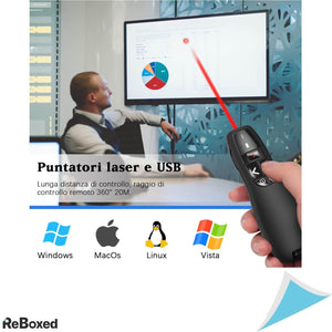 Wireless Presenter 2.4 GHz Bracco este un dispozitiv esential pentru profesionistii care doresc sa controleze prezentarile PowerPoint cu usurinta si precizie. Cu un receptor USB de 2.4 GHz, acest prezentator permite avansarea si revenirea diapozitivelor, activarea pointerului laser rosu si controlul volumului, oferind o experienta de prezentare fluida si profesionala.
