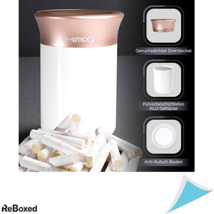 e-smoQ este o scrumiera antimiros moderna, special conceputa pentru stickuri de tutun si compatibila cu Iqos Heets & Terea. Dotata cu capac, aceasta previne raspandirea mirosurilor neplacute, fiind ideala pentru utilizarea in masina sau acasa.