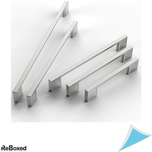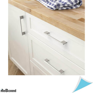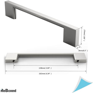 Manere pentru usi si sertare fabricate din aliaj solid de zinc, cu finisaj de inalta calitate, rezistente si durabile. Design modern, potrivit pentru bucatarii, dormitoare sau bai. Setul contine 10 manere si 20 de suruburi pentru montaj. Usor de instalat cu spatierea gaurilor de 128 mm.