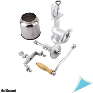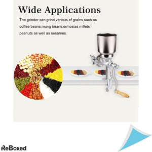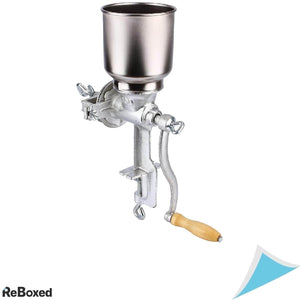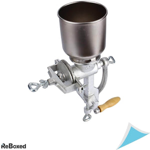 Aceasta rasnita manuala robusta este conceputa pentru macinarea usoara si eficienta a unei game largi de alimente precum cereale, porumb, boabe de cafea, piper, nuci si multe altele. Construita din fonta durabila, dispune de o pâlnie mare pentru alimentare continua si un sistem de prindere solid pe masa, oferind stabilitate maxima in timpul utilizarii.