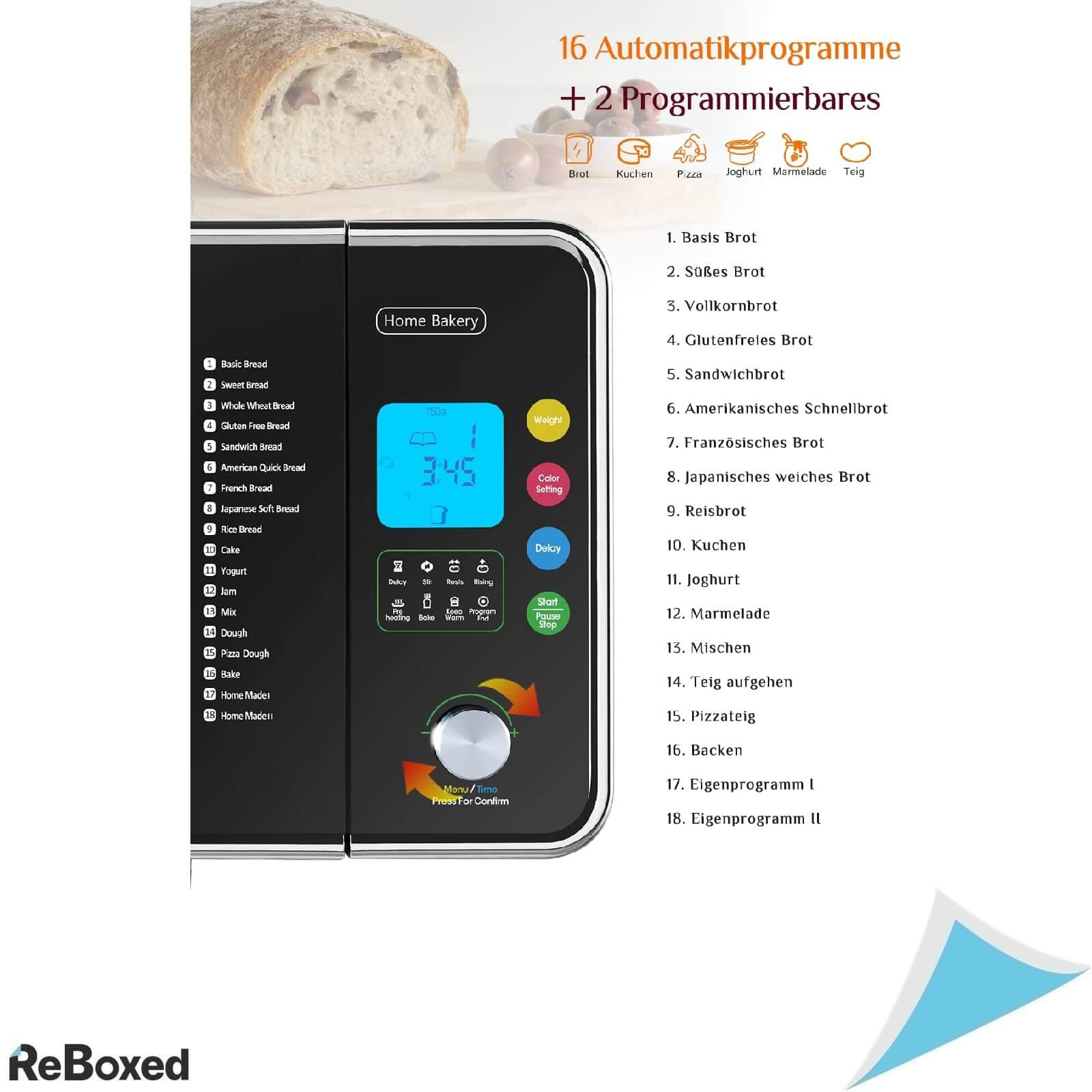 Numar programe: 18 programe presetate, inclusiv paine fara gluten, iaurt, prajituri, aluat si gem