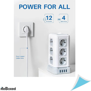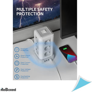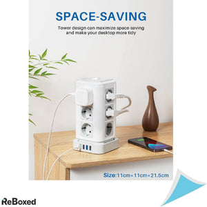 Priza economiseste spatiu si asigura un birou ordonat cu un spatiu minim necesar. Puterea maxima suportata este de 4000W si satisface nevoile de baza ale aparatelor dvs. de uz casnic sau echipamentelor de birou. Constructie stil turn, se poate amplasa oriunde. Cele 4 porturi USB-A dispun de iesire 5V/3.1A
