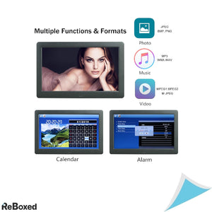 Functii multiple: redare foto/video/muzica, calendar, ceas, alarma, pornire/oprire automata si 6 limbi disponibile. Poti adauga muzica de fundal pentru o experienta mai placuta. Perfecta pentru orice ocazie – zi de nastere, nunta, reuniune de familie sau sarbatori.