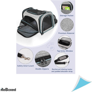 Asigura confort si siguranta animalului tau de companie in timpul calatoriilor cu geanta de transport Siivton, extensibila pe 4 laturi. Designul moale si pliabil, combinat cu un pad detasabil din fleece si bretele pentru umar, ofera atat confort pentru animal, cat si comoditate pentru tine. Aprobat pentru calatorii aeriene, acest transportor este ideal pentru zboruri, calatorii cu masina sau vizite la veterinar.